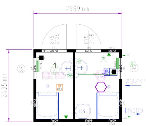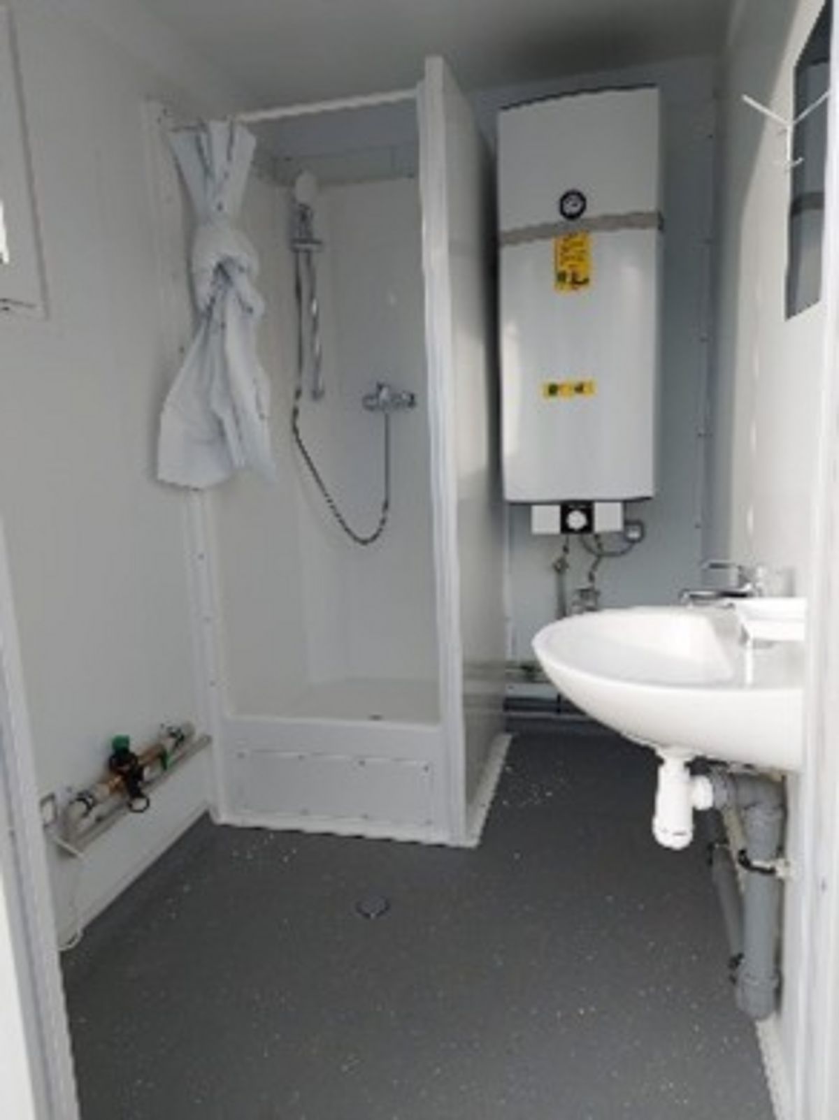 Bevat: 2 compartimenten met elks 1 douche (inclusief douchegordijn) met 1 lavabo (spiegel)